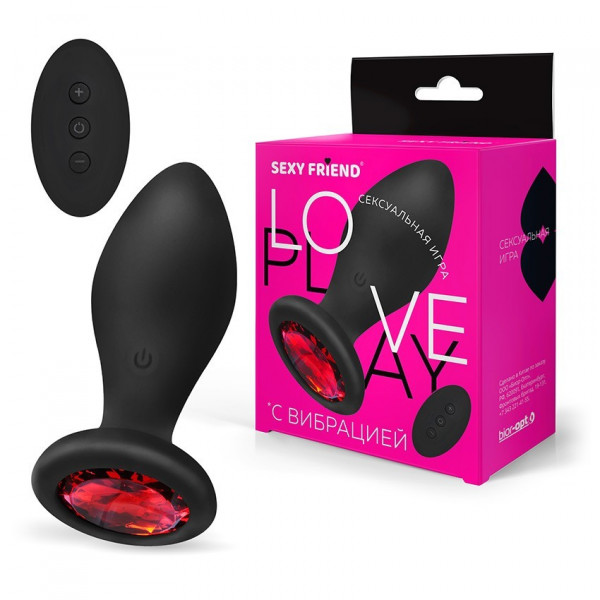Пробка c красным кристаллом "Sexy Friend" на дистанционном управлении, черная, M